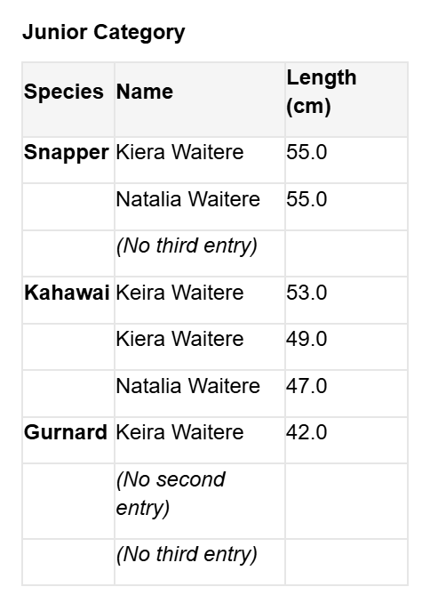 - Epic Prizes: With categories for heaviest and longest fish, overall points, and special lucky draws, there are heaps of ways to win. Prizes are up for grabs in Men’s, Women’s, and Junior divisions for snapper, kingfish, kahawai, trevally, gurnard, and more.