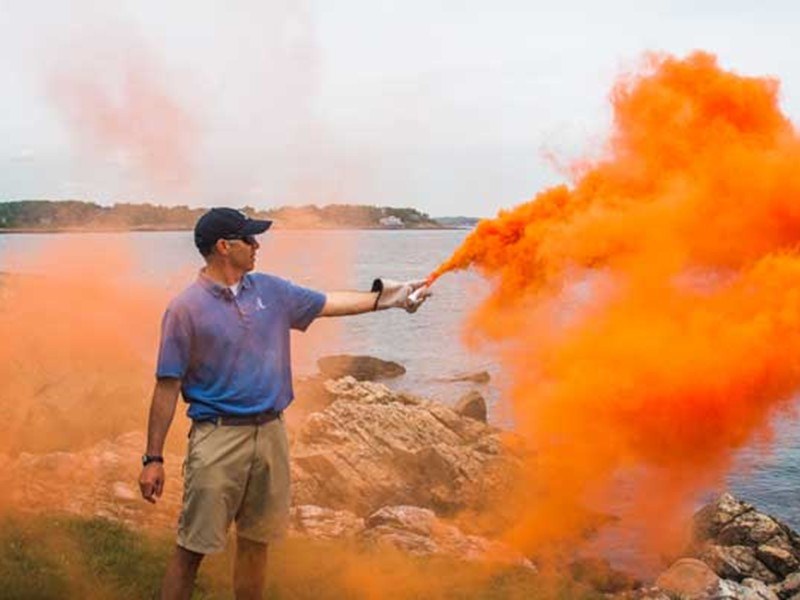 Orange smoke – when triggered, this lets off a cloud of orange smoke, which can't be extinguished due to heavy rain or howling wind. These are good as a line-of-sight distress signal, but because there's nothing burning (and so nothing glowing) they're suited for daytime use only.