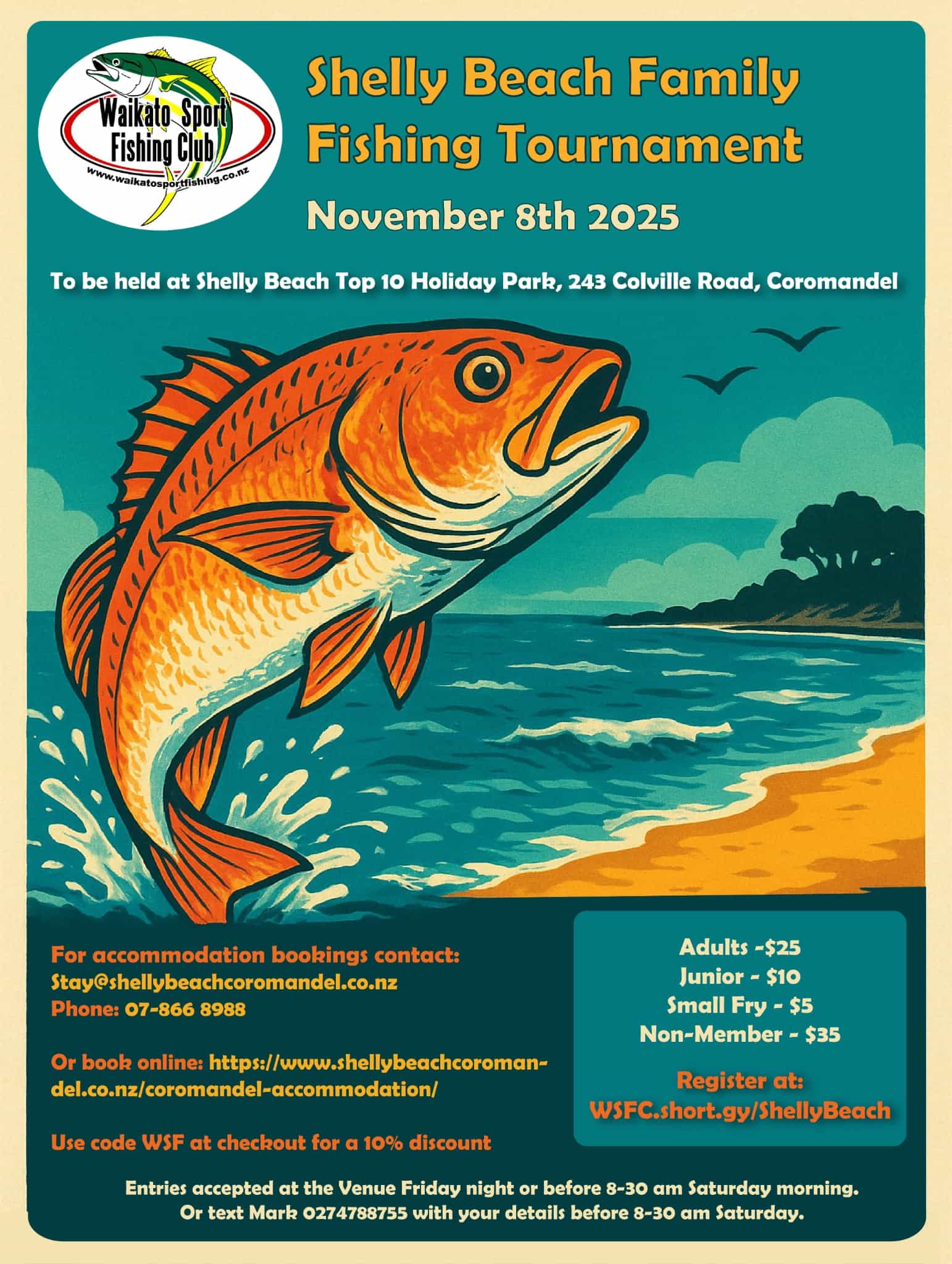 We look forward to welcoming you to an enjoyable and memorable family fishing competition at Shelly Beach.