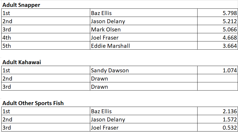 The much-loved annual WSFC Shelly Beach Family Fishing Tournament held on Saturday 8th November was a tremendous success this year, drawing 54 participants who collectively weighed in 77 fish. The event was filled with excitement and friendly rivalry, although the kahawai proved elusive with only two caught throughout the competition. Interestingly, no kingfish were landed this year either. Competitors both regulars and newcomers enjoying the chance to catch up and share stories.